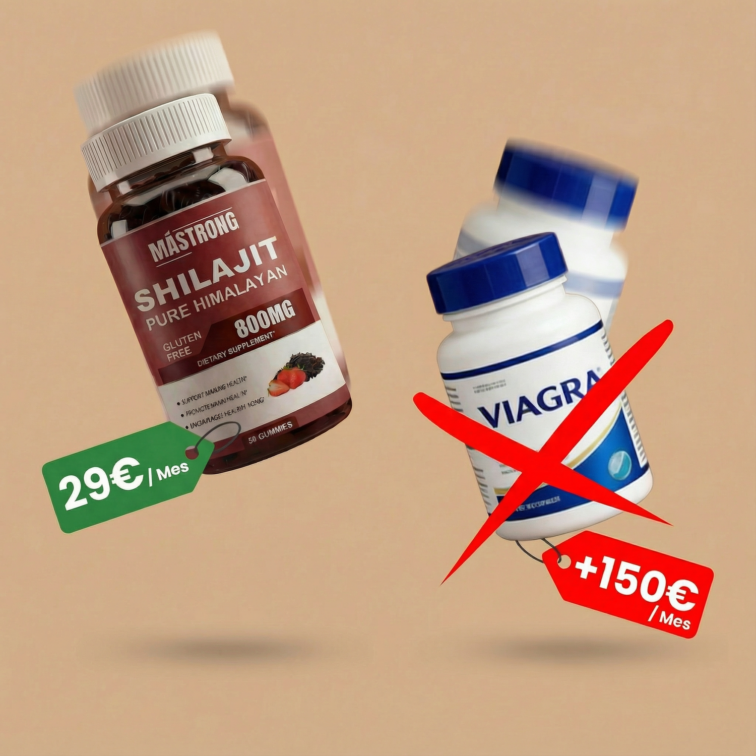 ¿Te preocupa la seguridad o los efectos secundarios? No te preocupes, MÁSTRONG™ funciona de manera natural y a escala, en comparación a la Viagra recetada por las empresas farmacéuticas.